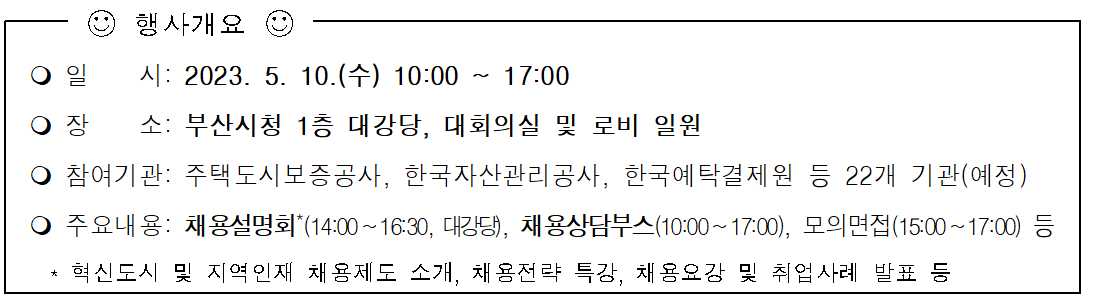 「2023 부산혁신도시 공공기관 지역인재 합동채용설명회」안내